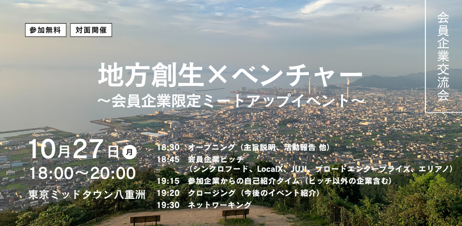 参 加:熱意ある地方創生ベンチャー連合 会員企業(クローズド開催)