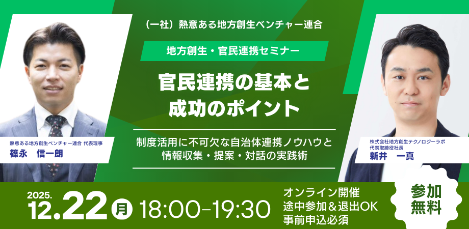 12/22(月)にオンラインにて、地方創生・官民連携セミナーを行うことが決定いたしました。 ...